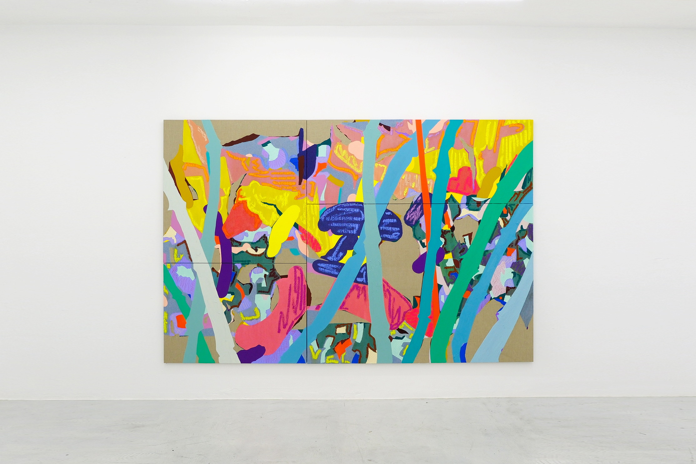 Muy atento a la tonalidad, Juan Uslé explora el color, pero no busca un efecto cromático intenso, sino que las gradaciones a veces evocan el paisaje rural español donde creció. Las vibraciones de cierta luz y sombra también son elementos constantes, creando una resonancia momentánea, como la luz del sol[...]